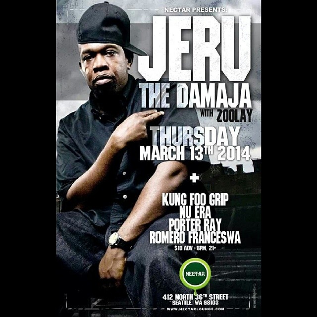 JERU THE DAMAJA + ZOOLAY in #Seattle #Washington Posted on March 9, 2014 by zoolaymusic Standard MARCH 13th at the NECTAR LOUNGE in SEATTLE only $10 Bones.. Share this: Click to share on X (Opens in new window) X Click to share on Facebook (Opens in new window) Facebook Like Loading...